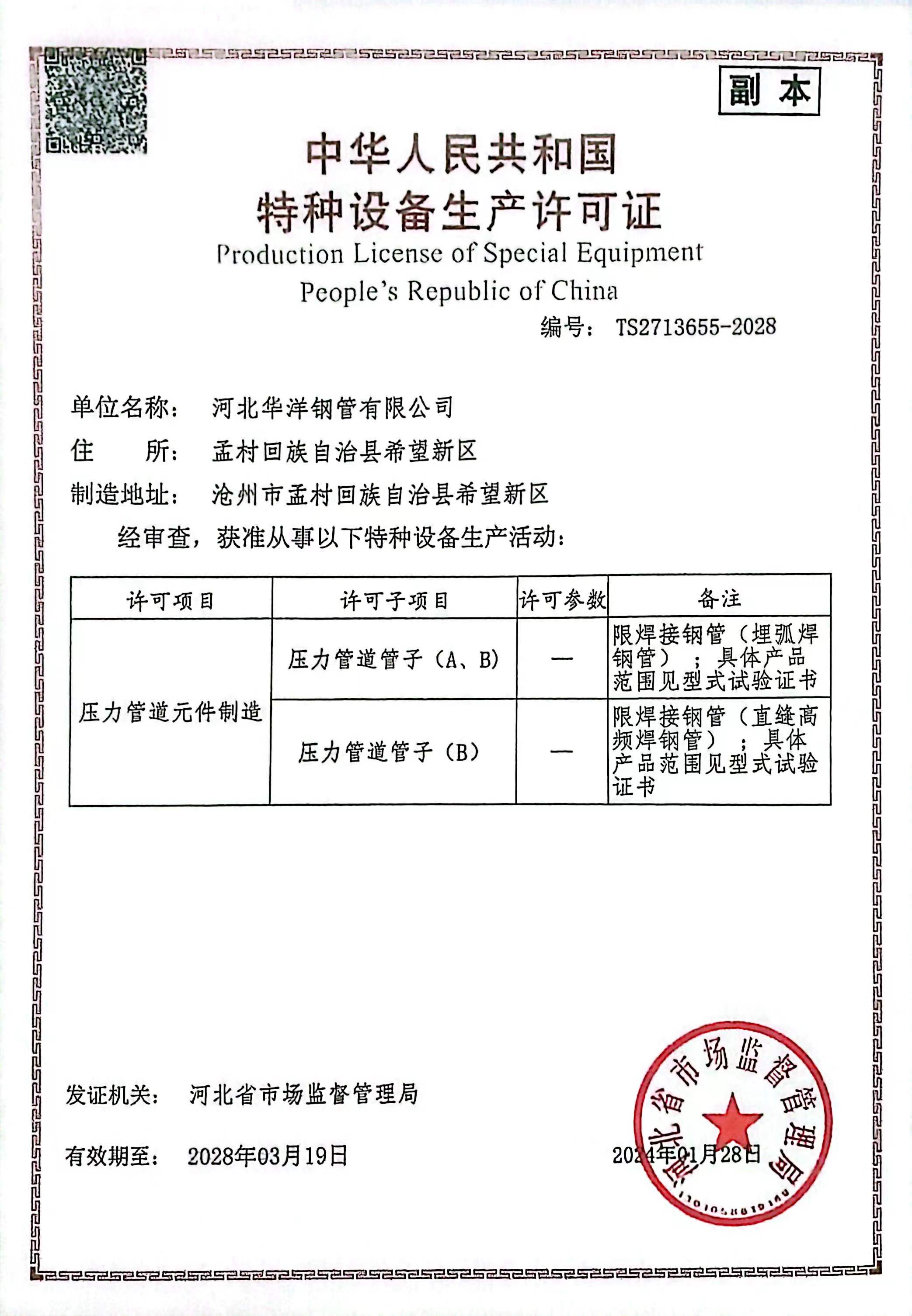 公司產(chǎn)品主要用于石油、天然氣、水、蒸汽、煤氣等高、中、低壓流體輸送管道及打樁、橋梁、建筑等結(jié)構(gòu)用鋼管,并承擔(dān)了國(guó)內(nèi)外標(biāo)志性工程建設(shè),華洋作為一個(gè)綜合型生產(chǎn)企業(yè),下設(shè)河北銘高貿(mào)易有限公司,以及在天津石家莊、山東、四川、廣州等地設(shè)立有3家分公司和5個(gè)辦事處。產(chǎn)品銷往各個(gè)城市井出口東南亞、中東、歐美等八十多個(gè)地區(qū),在國(guó)內(nèi)外享有很高的聲譽(yù)。