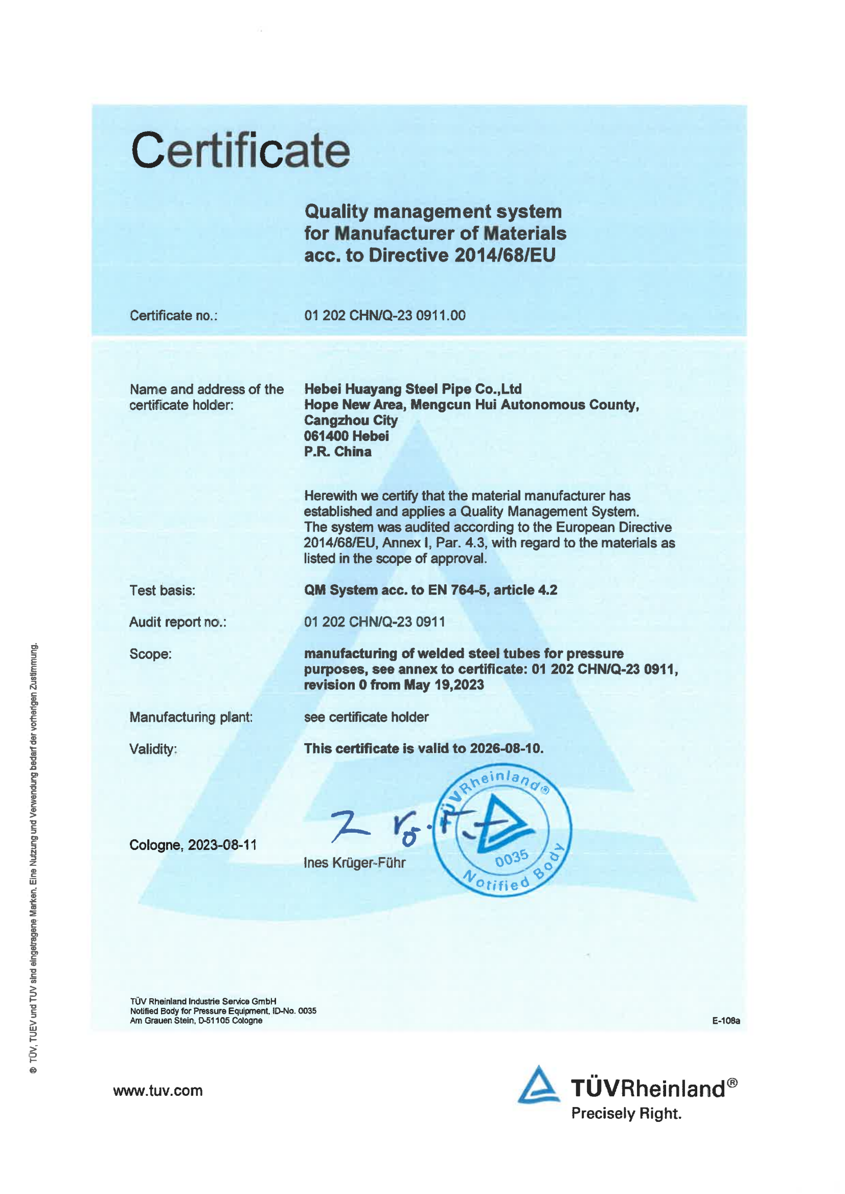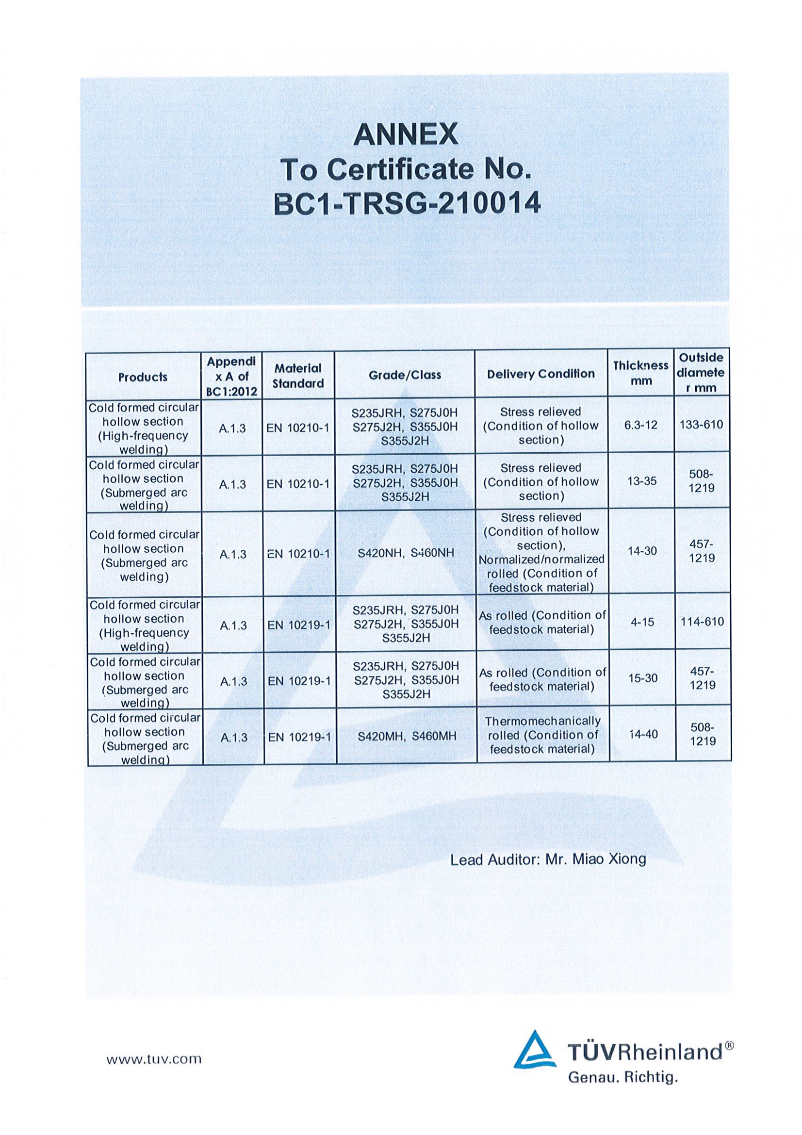 公司現(xiàn)有17條新型的自動(dòng)化鋼管生產(chǎn)線,包括Φ73-660.4高頻直縫焊鋼管生產(chǎn)線14條、Φ406.4-Φ1422.4直縫雙面埋弧焊鋼管生產(chǎn)線3條,并配備有一條防腐生產(chǎn)線,可進(jìn)行3PE、2PE、FBE、2PP、3PP防腐處理,同時(shí)還可提供鋼管深加工服務(wù)。公司擁有先進(jìn)的理化實(shí)驗(yàn)室,可承擔(dān)鋼管的各項(xiàng)物理及化學(xué)檢測(cè)與試驗(yàn)。公司先后取得了ISO9001質(zhì)量管理體系認(rèn)證、ISO14001環(huán)境管理體系認(rèn)證、ISO45001職業(yè)健康安全管理體系認(rèn)證、特種設(shè)備制造許可證、API5L和API2B認(rèn)證證書、歐盟CE認(rèn)證、俄羅斯GOST認(rèn)證、法國(guó)船級(jí)社(BV)工廠認(rèn)證、科威特石油入網(wǎng)認(rèn)證、中海油入網(wǎng)證、安全生產(chǎn)標(biāo)準(zhǔn)化二級(jí)企業(yè)等標(biāo)準(zhǔn)質(zhì)量體系認(rèn)證。
